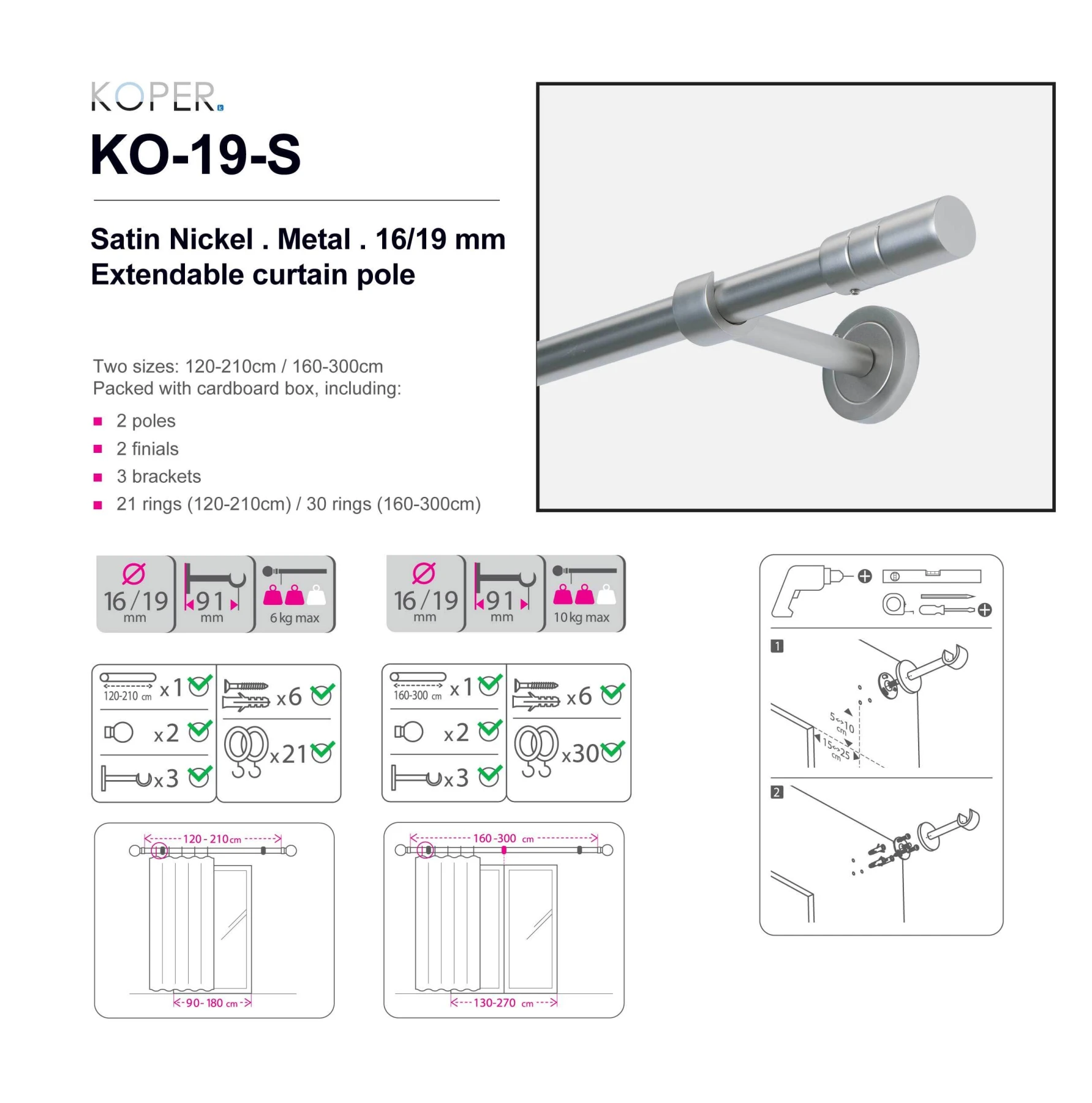 120-210CM SATIN NICKEL - small round pole - 16/19mm