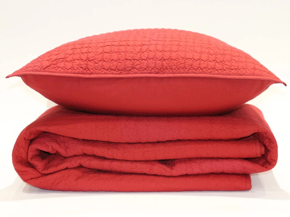 geometric design quilt red 220x240 cm with two cushion covers