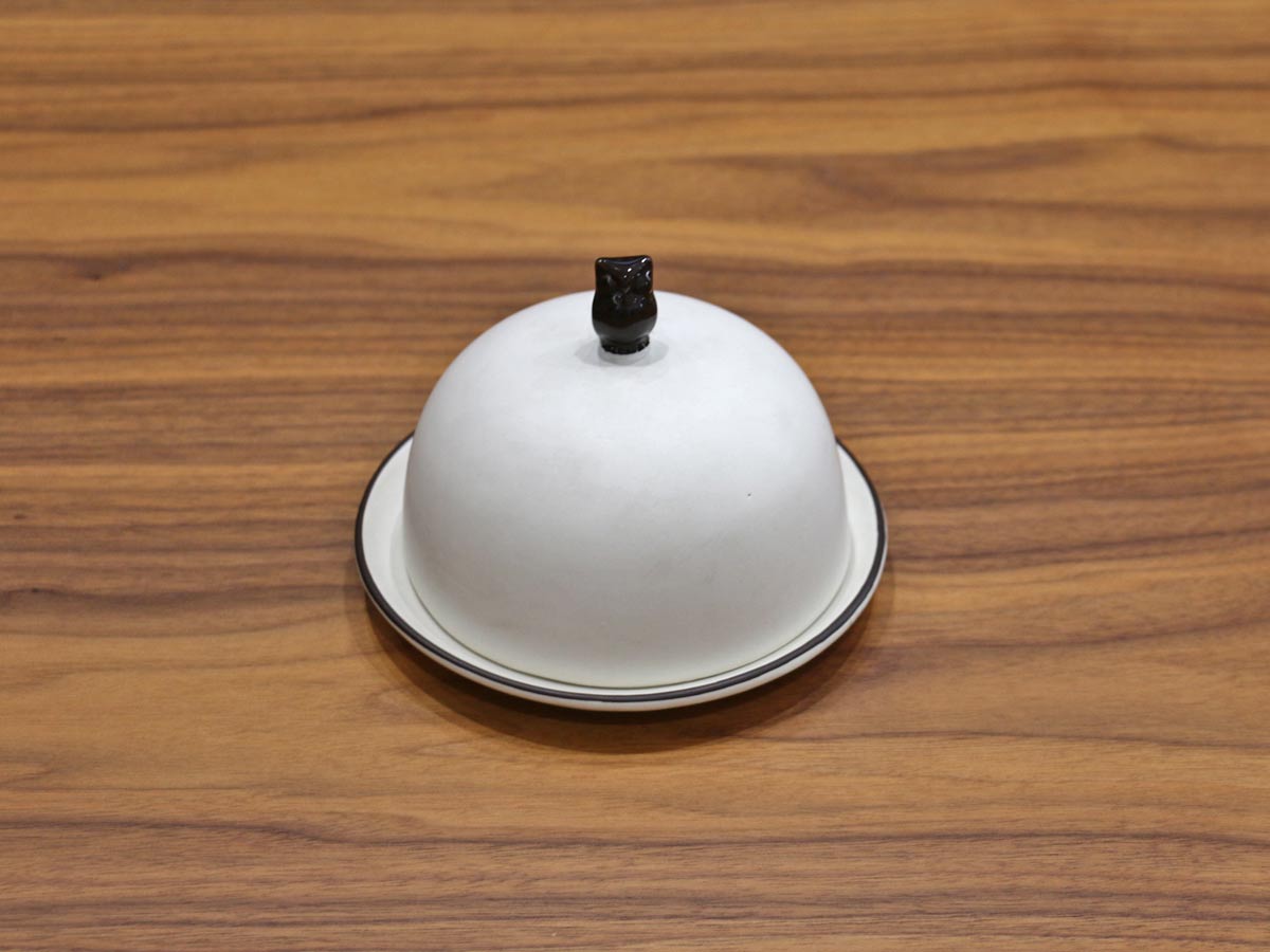owl design covered butter plate