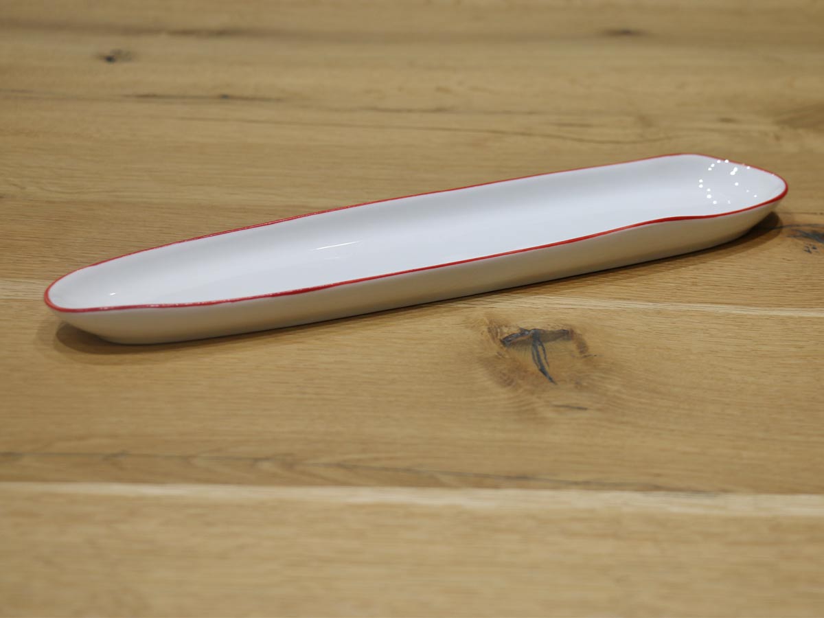 porcelain oblong plate with orange rim 34cm