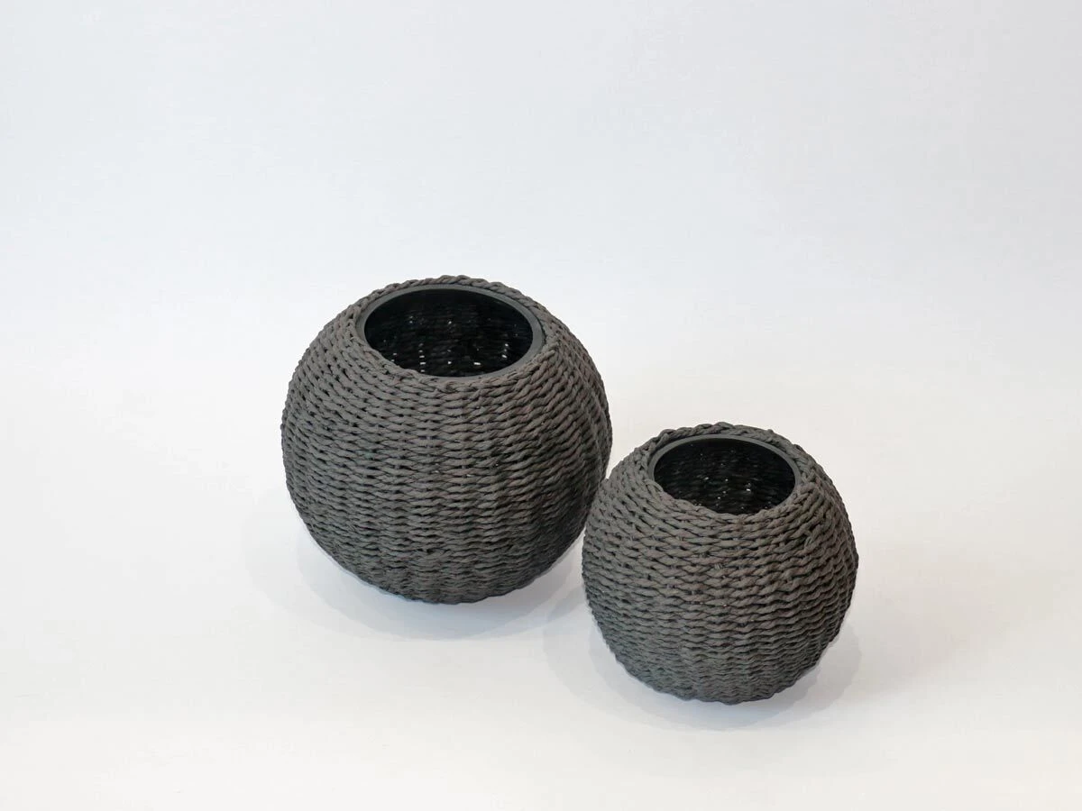 round glass vase covered with black bamboo large