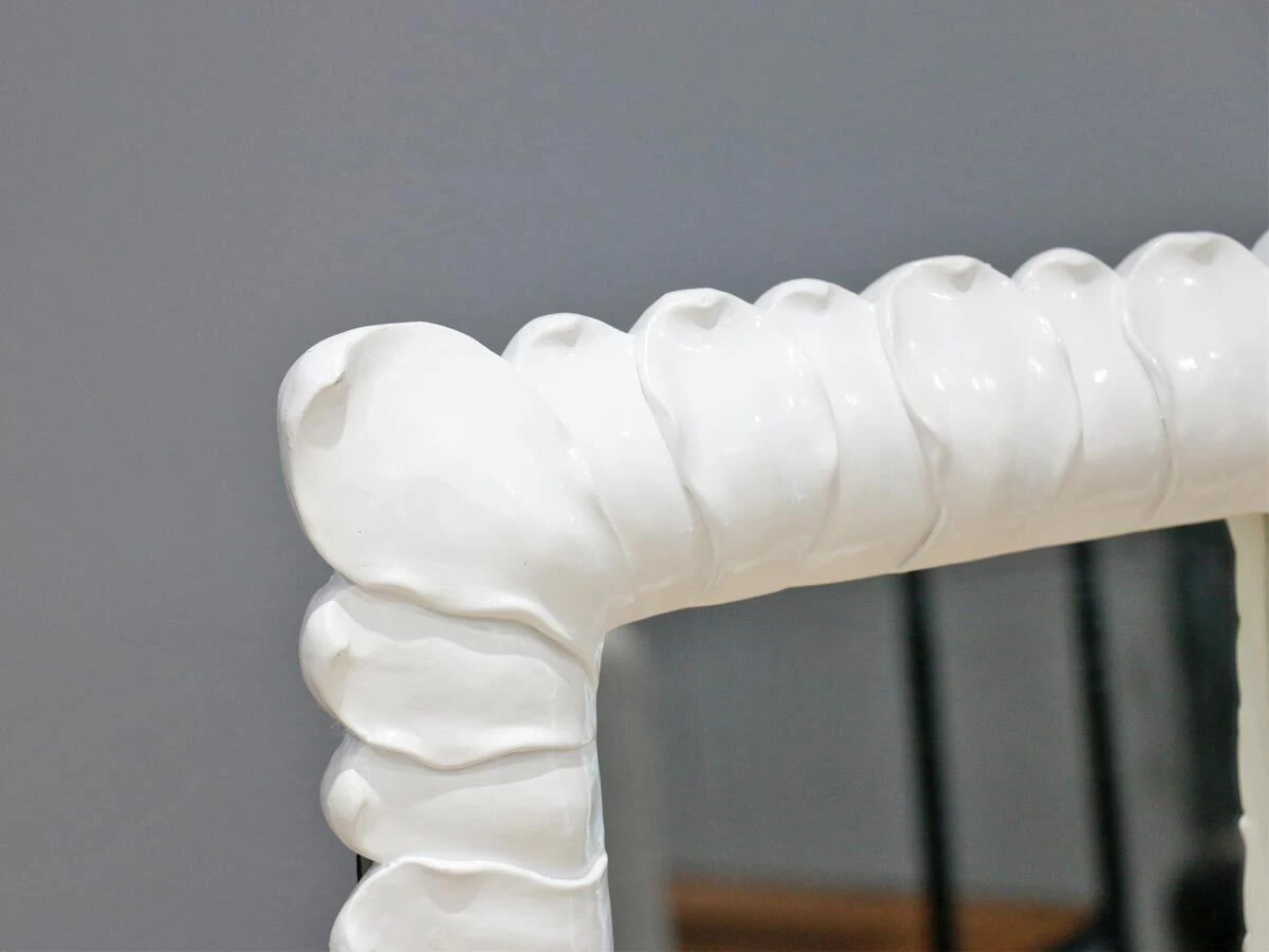 white frame mirror with petal design