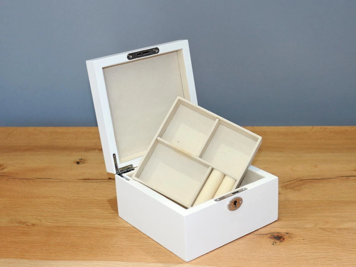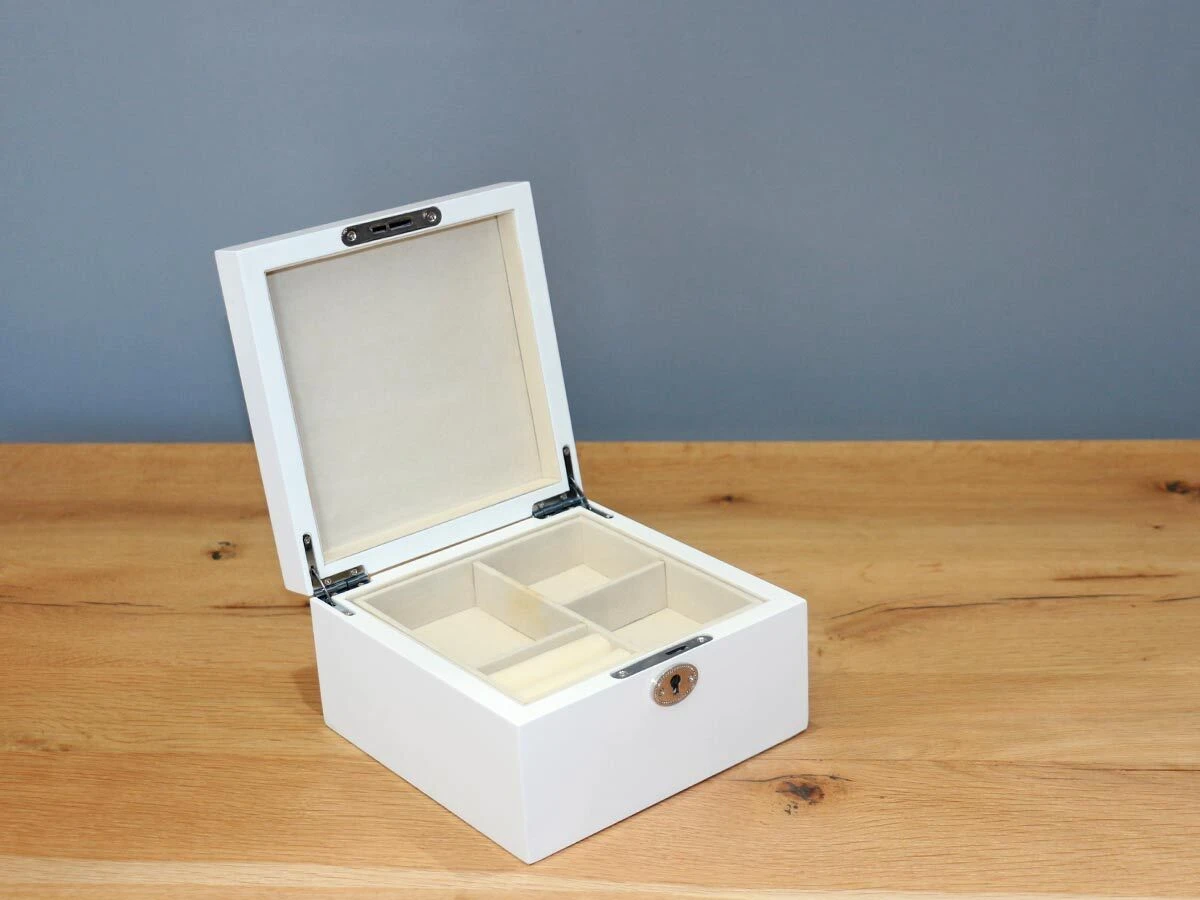 white glossy jewelry box with mirror