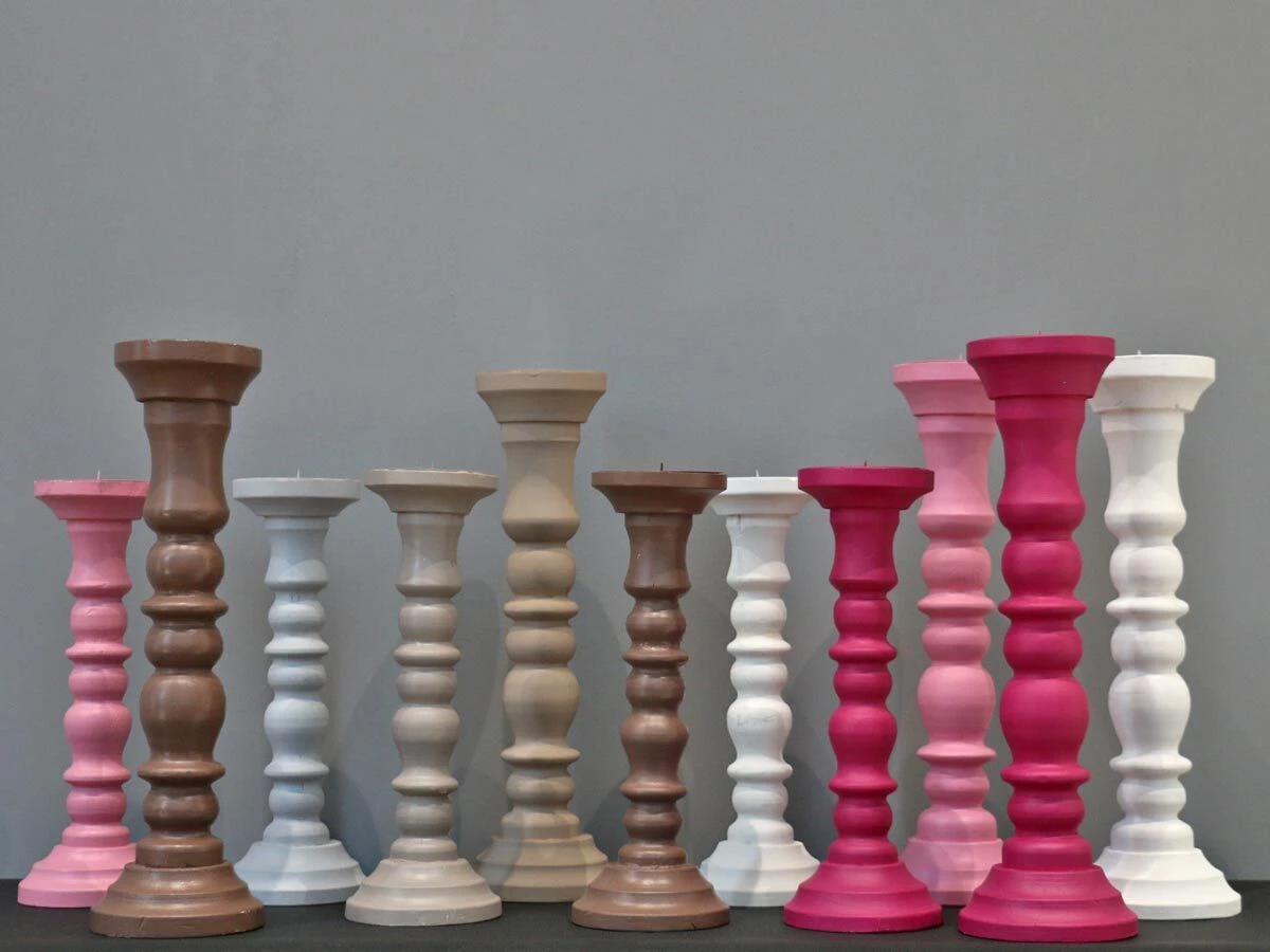 white wooden candle holder long