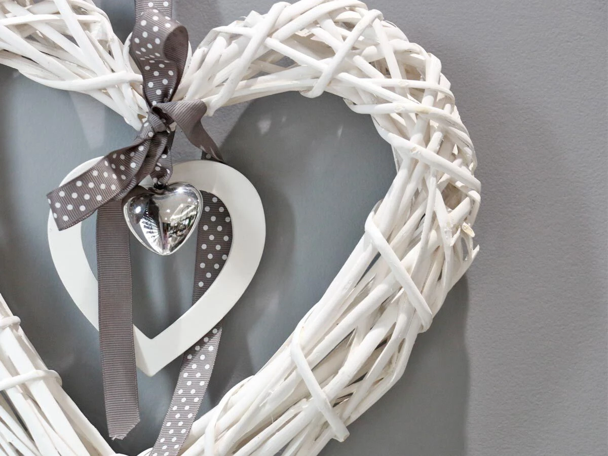 Willow heart with ribbon and silver color heart